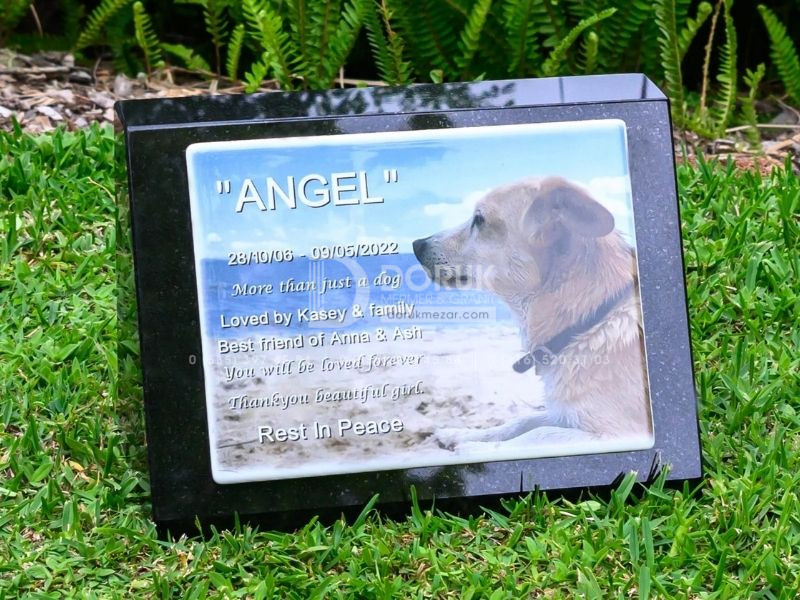 Resimli Granit Pet Mezar Taşı Abide Model – Porselen Fotoğraflı Evcil Hayvan Anıt Modeli